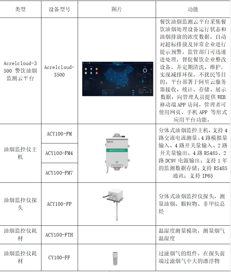 AcrelCloud-3500餐飲油煙監測平臺可對餐飲點位進行不間斷的數據跟蹤與統計分析,在發生油煙濃度預警時,信息可多種途徑及時通知相關單位處理,確保油煙等污染物的正常排放,讓超標濃度無處可藏,防患于未然。針對各餐飲點位安科瑞通過加裝多種產品可以進行檢測,主要有ACY100型號餐飲油煙監測設備,外加裝電流互感器及溫濕度探頭。