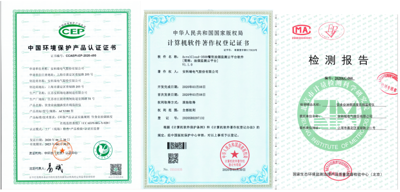 已經獲取中國環境保護產品認證證書(中環協CCEP認證證書)并取得對應的軟件測試報告《油煙濃度在線監測儀測試報告》,還取得計算機軟件著作權。