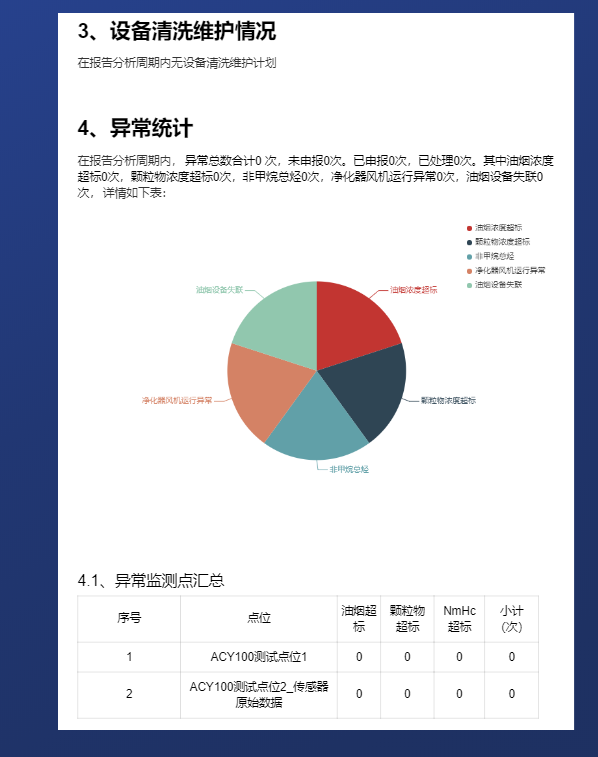 設置企業檢測儀定期的清洗、更換計劃,包括維護監測點位的安裝時間,上一次清洗時間,以及下一次的維護周期,對應的負責人等信息,清洗前/后照片對比。