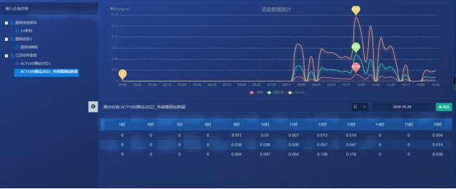歷史數據:支持對數據進行年、月、日篩選查詢,自定義日期篩選數據,相關數據支持Excel表格導出,便于后期數據的校驗和排查。