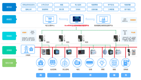 AcrelEMS企業(yè)微電網(wǎng)系統(tǒng)通過在源、網(wǎng)、荷、儲、充的各個關(guān)鍵節(jié)點安裝監(jiān)測、分析、保護、治理裝置,通過高性能邊緣計算網(wǎng)關(guān)采集數(shù)據(jù)并上傳至企業(yè)微網(wǎng)平臺。平臺根據(jù)電網(wǎng)價格、用電負荷、電網(wǎng)調(diào)度指令等情況,調(diào)整各系統(tǒng)控制策略并遠程下發(fā),使企業(yè)微電網(wǎng)始終合理穩(wěn)定運行,降低企業(yè)用電成本,實現(xiàn)能源互聯(lián)、信息互動。