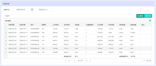 能耗分析:用戶和管理員都可查詢預付費表或管控表每天的用能狀況;可提供能耗分析+財務軌跡一體式綜合管理報表,包含用戶表的能耗、財務數據、能耗和財務的期初期末值等數據。