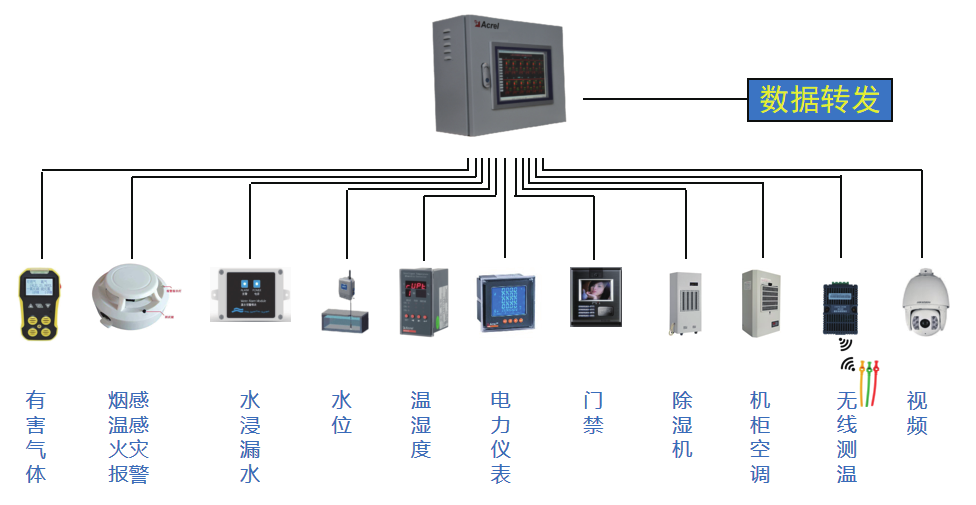 安科瑞電氣股份有限公司根據配電室實際情況,結合多年的變電站和配電室的運行管理經驗,自主研發了安科瑞配電室綜合監控系統,實現了智能開關柜運行監控、高壓開關柜帶電顯示、電流電壓等負載運行監控、母線測溫監測、電纜測溫監測、環境監測、有害氣體監測、安防監控、采暖通風、門禁、燈光、風機、除濕機、空調控制等功能。實現動力環境各數據的檢測與設備控制,實現動力環境優化,避免運行環境的失控導致配電設備運行故障,保證維護人員安全,延長設備使用壽命,減少配電室粗放式管理導致成本過高,同時實現配電動力環境的分布式遠程管理。