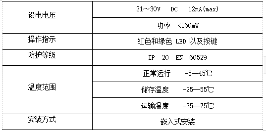 用于接受外部干接點信號輸入,可通過不同參數配置實現開關、調光、場景、窗簾控制、調溫、報警等功能,電氣參數如下:
