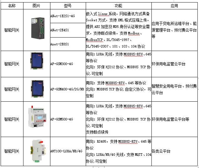 安科瑞根據多年來的項目經驗,結合用戶實際需求,開發了各類有線、區域無線、廣域無線通訊產品,包括網關和終端設備。支持RS485、以太網、LORA、ZigBee、GPRS、4G、NB-IOT等多種通訊方式,隨著5G建設步伐的加快,未來將會有越來越多的通訊方式融入產品,服務于泛在電力物聯網建設。