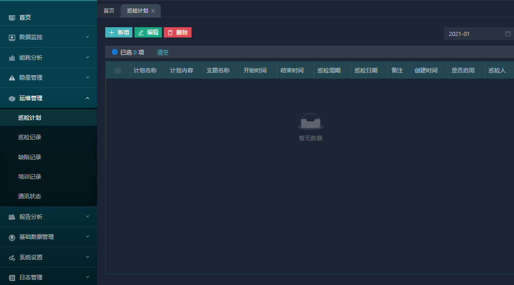 1.監測路燈的開閉,使用時長,非工作時間開啟,或開啟時間過短,則進行預警;