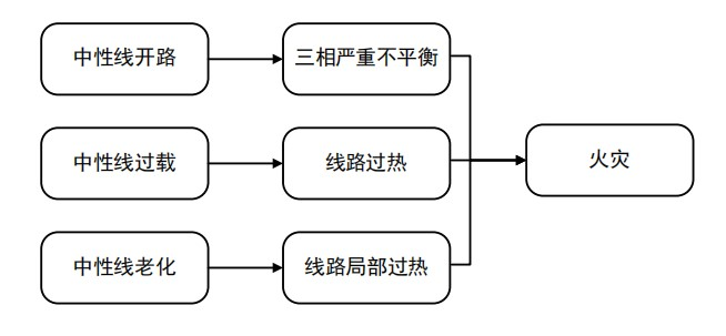 在三相四線制或五線制供電系統運行過程中,中性線引發火災事故主要通過三種途徑: