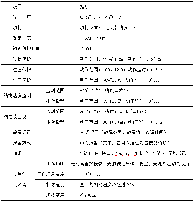 ■配電線纜溫度監測功能。當被監測線纜溫度超過報警設定值時,保護器發出聲光報警信號,可預先設置是否啟動限流保護。