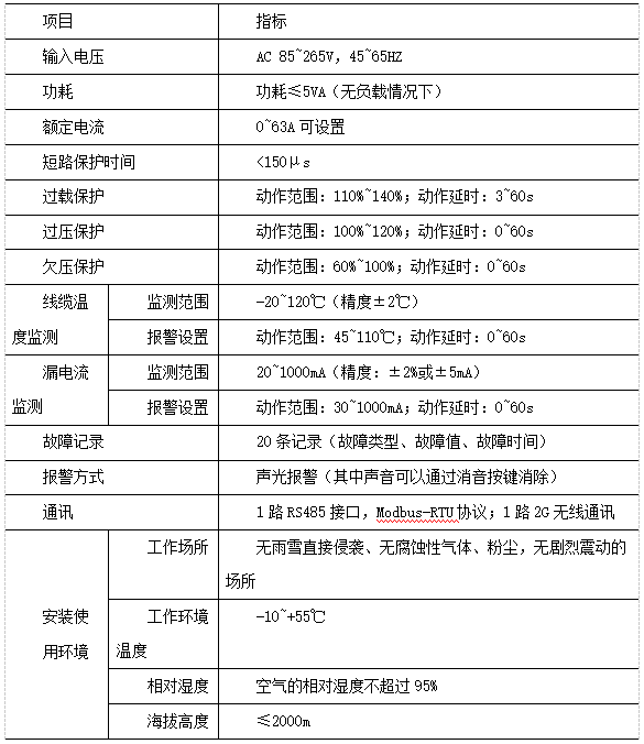 E)電纜溫度監測功能,被測線纜溫度超過報警設定值時,保護器告警或限流保護(可設);