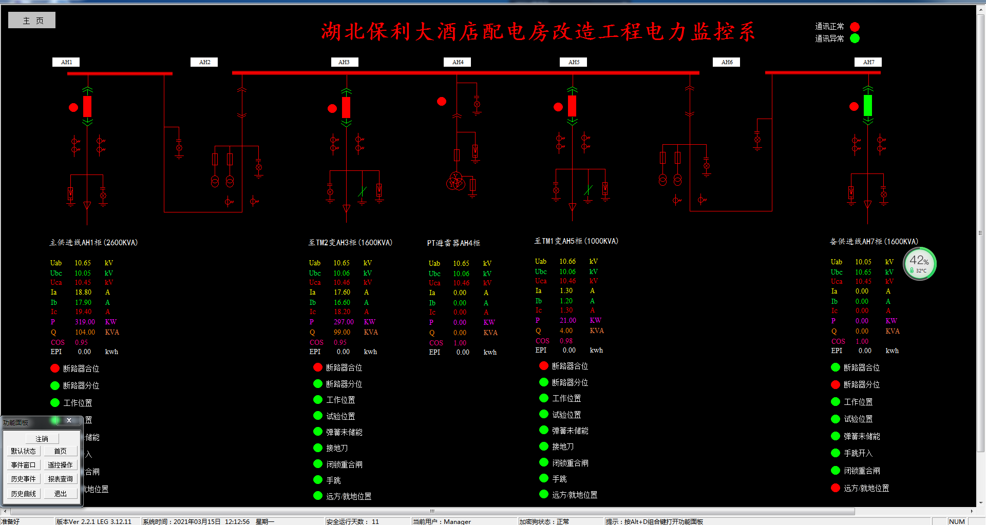 在當今配電設施的應用中,項目的配電安全性至關重要,本文介紹的Acrel-2000Z電力監控系統湖北保利大酒店配電房改造工程的應用,可以實現對配電室供配電回路用電的實時監控,不僅能顯示回路用電狀況,還具有網絡通訊功能,可以與串口服務器、計算機等組成電力監控系統。系統實現對采集數據的分析、處理,實時顯示配電室內各配電回路的運行狀態,對負載越限具有彈出報警對話框語音提示,并生成各種電能報表、分析曲線、圖形等,便于電能的遠程抄表以及分析、研究該系統運行安全、可靠、穩定,為商業廣場項目解決用電問題提供了真實可靠的依據,取得了較好的企業效益。