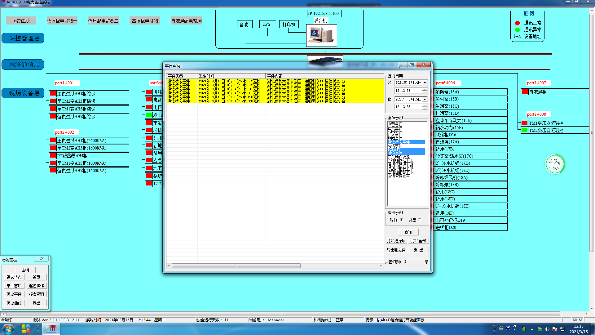 事件告警記錄功能,主要完成對查詢時間段內出現的報警信息事件記錄以及發生時間為值班人員提供依據并且分析事故發生的原因,如下圖所示: