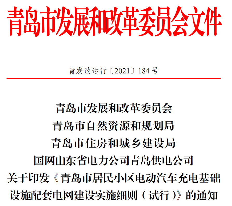 (2)青島市發(fā)展和改革委員會 關(guān)于印發(fā)《青島市居民小區(qū)電動汽車充電基礎(chǔ)