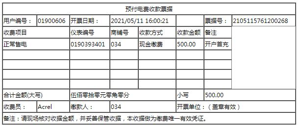 售電、退電、開戶時系統支持三聯單單據打印的功能,單據格式默認如下(可以由客戶確認后自由定制):