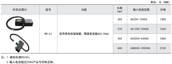 BR系列產品應用電磁感應原理,對電網中的交流大電流進行實時測量,采用真有效值和線性補償技術,將其隔離變換為標準的直流信號輸出。