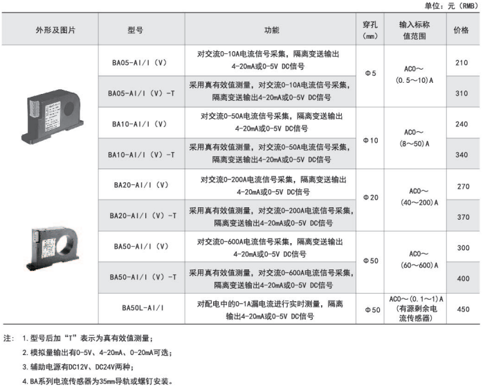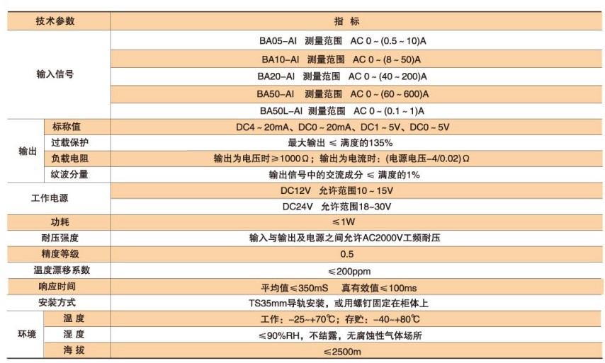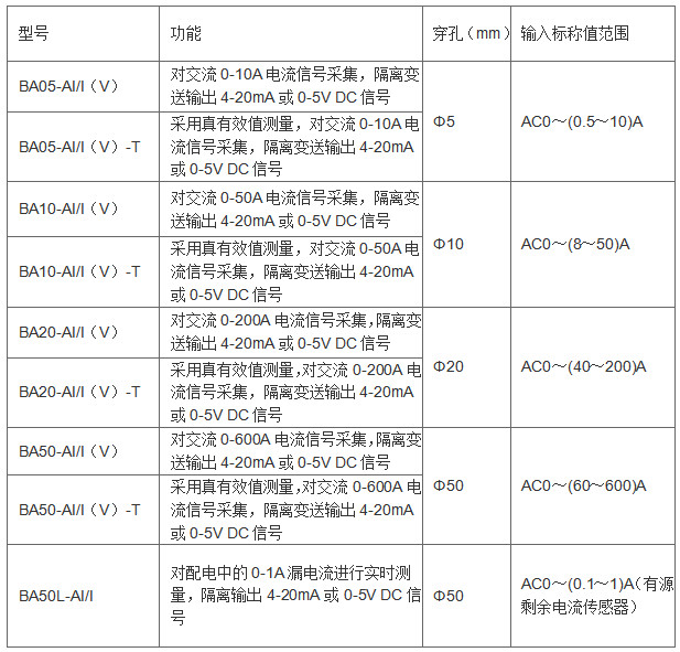 BA系列交流電流傳感器