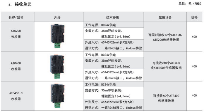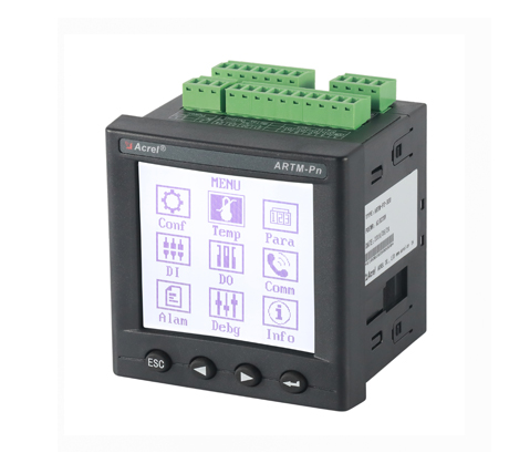 ARTM-Pn無線測溫裝置:ARTM-Pn無線測溫裝置可以單獨安裝在高壓柜、低壓抽屜柜內,每臺裝置可以接收18個傳感器的數據,傳感器型號可選配ATE100、ATE200、ATE300。裝置帶有一路485接口,可將采集到的溫度數據上傳到監(jiān)控中心。
