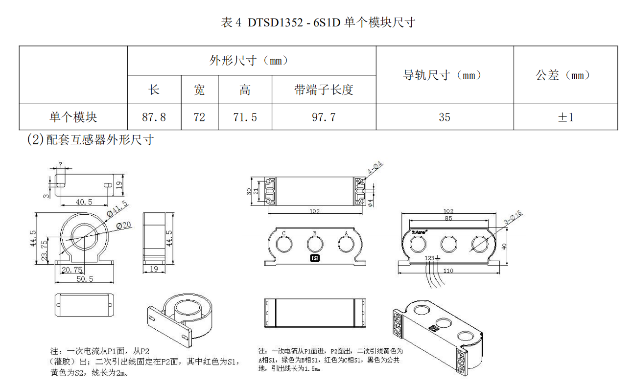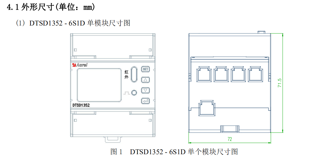 DTSD1352 - 6S1D 系列導軌式多回路基站計量表主要用于多個三相回路的全電參量測量,最多可同時接入六個三相回路、一個單相回路的電流輸入。可直接或間接測量電壓電流、功率、功率因數、相角、不平衡度、諧波等參數。