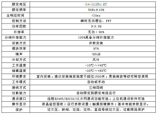 適用于0.4KV系統中動態補償無功和諧波電流。